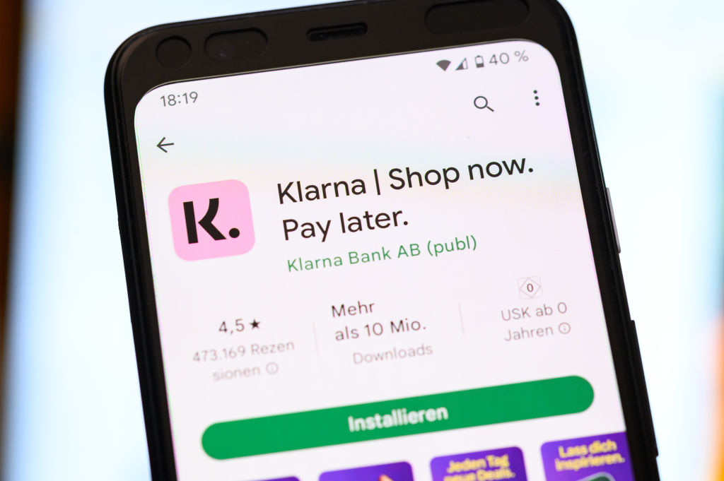 PRODUZIONE – 27 settembre 2022, Amburgo: L’applicazione del fornitore svedese di pagamenti Klarna è visibile su uno smartphone. Foto: Jonas Walzberg/dpa (Foto di Jonas Walzberg/picture alliance via Getty Images)